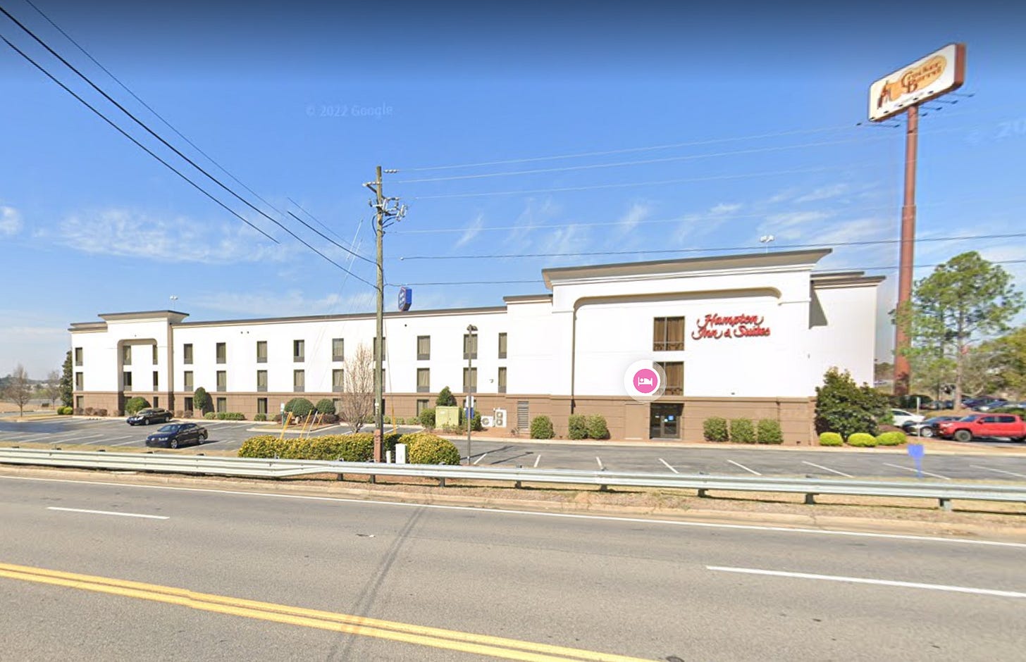 Well, does it look slightly long and low for a Hampton Inn or similar hotel? Here it is from the air: