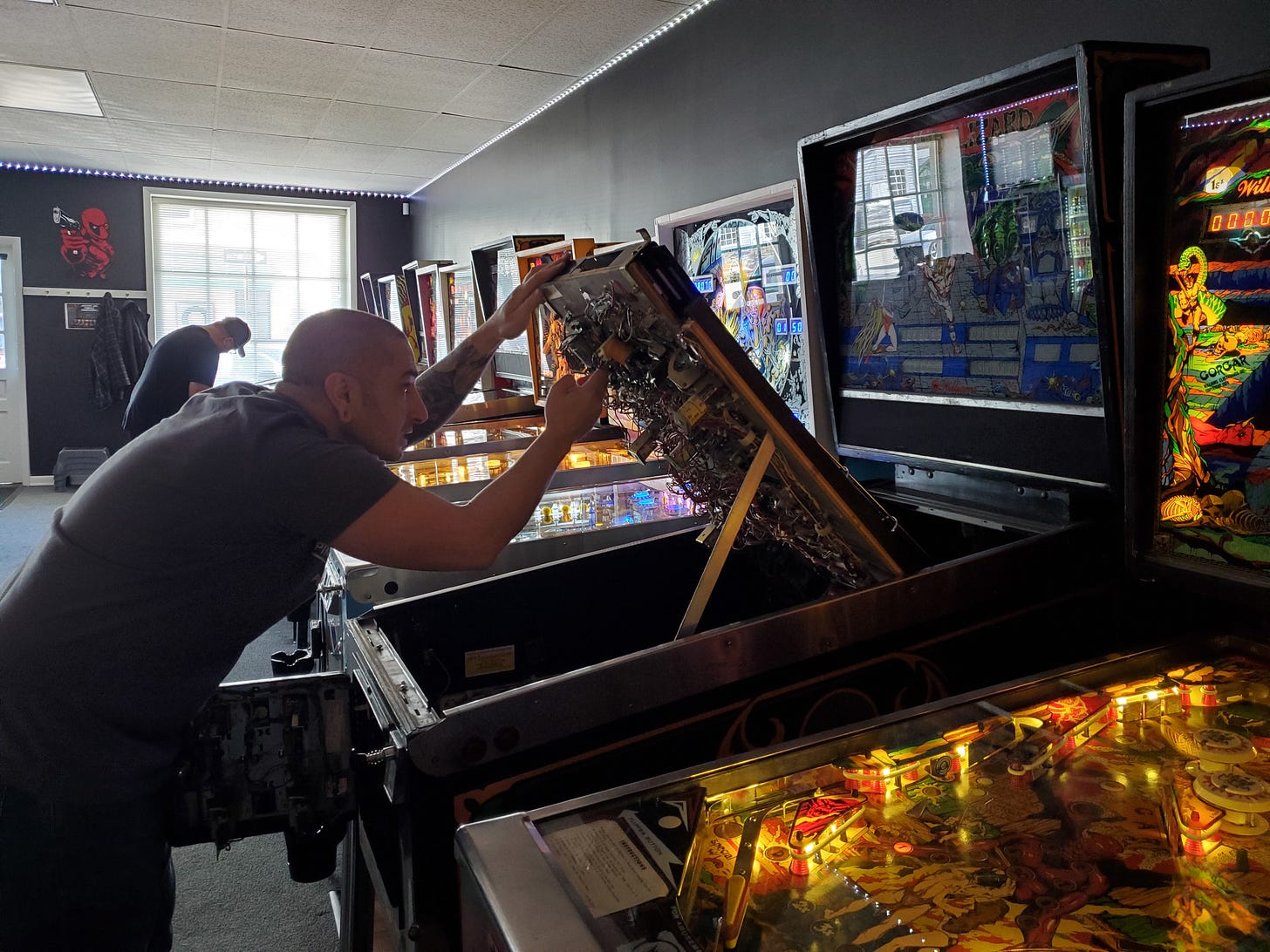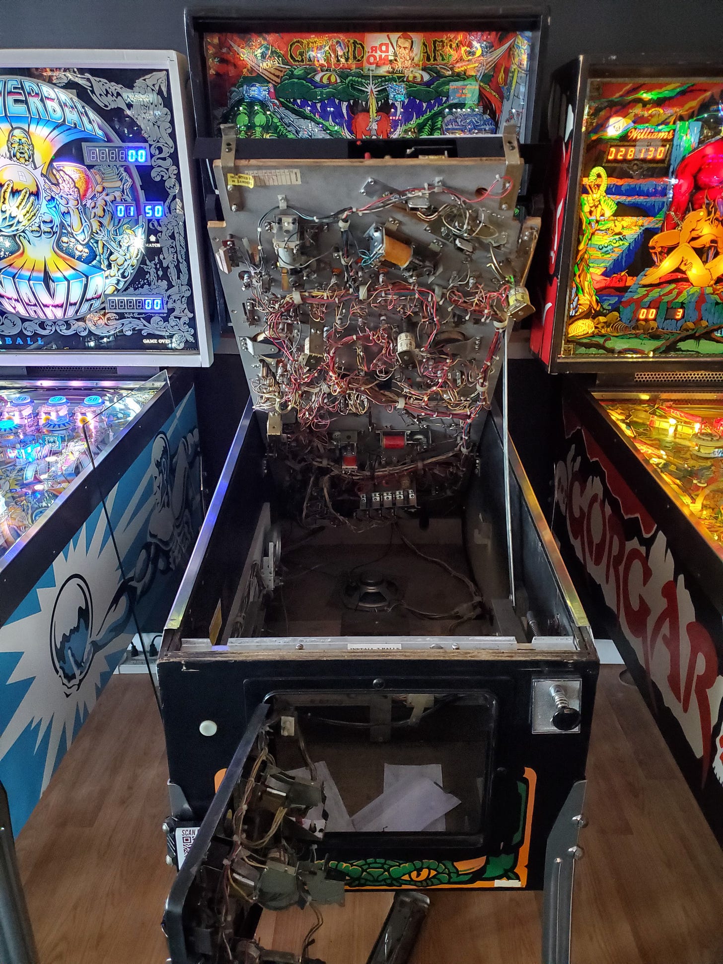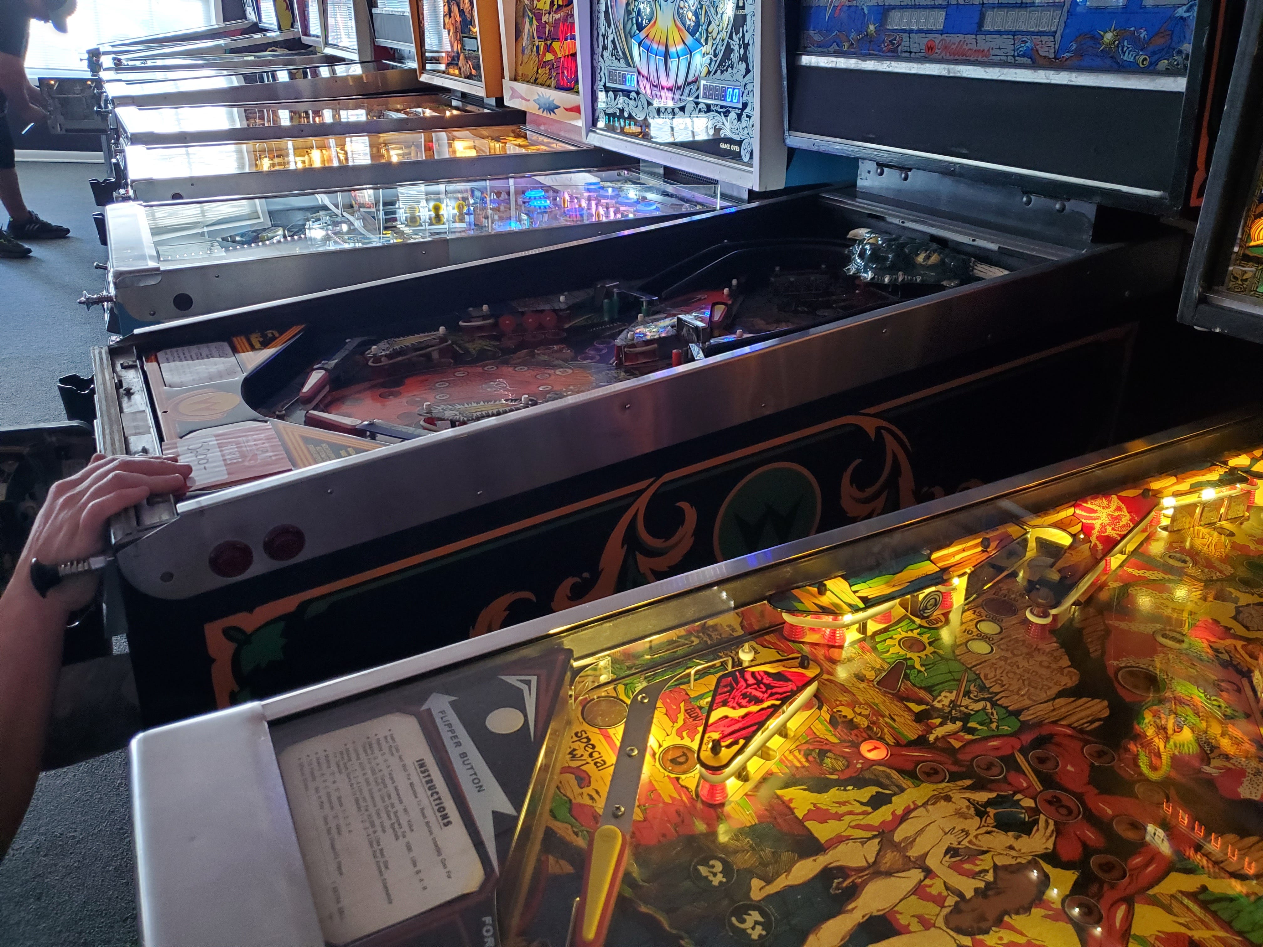 I say happy, because I got to see a pinball machine fully opened up! I didn’t really know the tables opened up like car hoods!