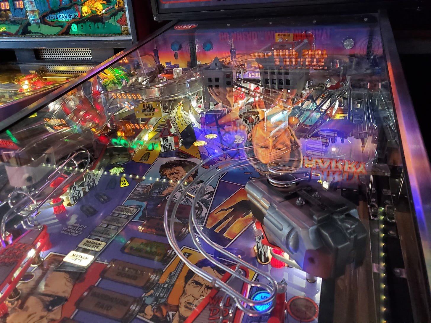 The fellow in this picture is one of the owners of the place. They’re out on the floor all day, chatting with customers, checking on machines (I also needed someone to pull the plexiglass top off one table and retrieve a stuck ball).
