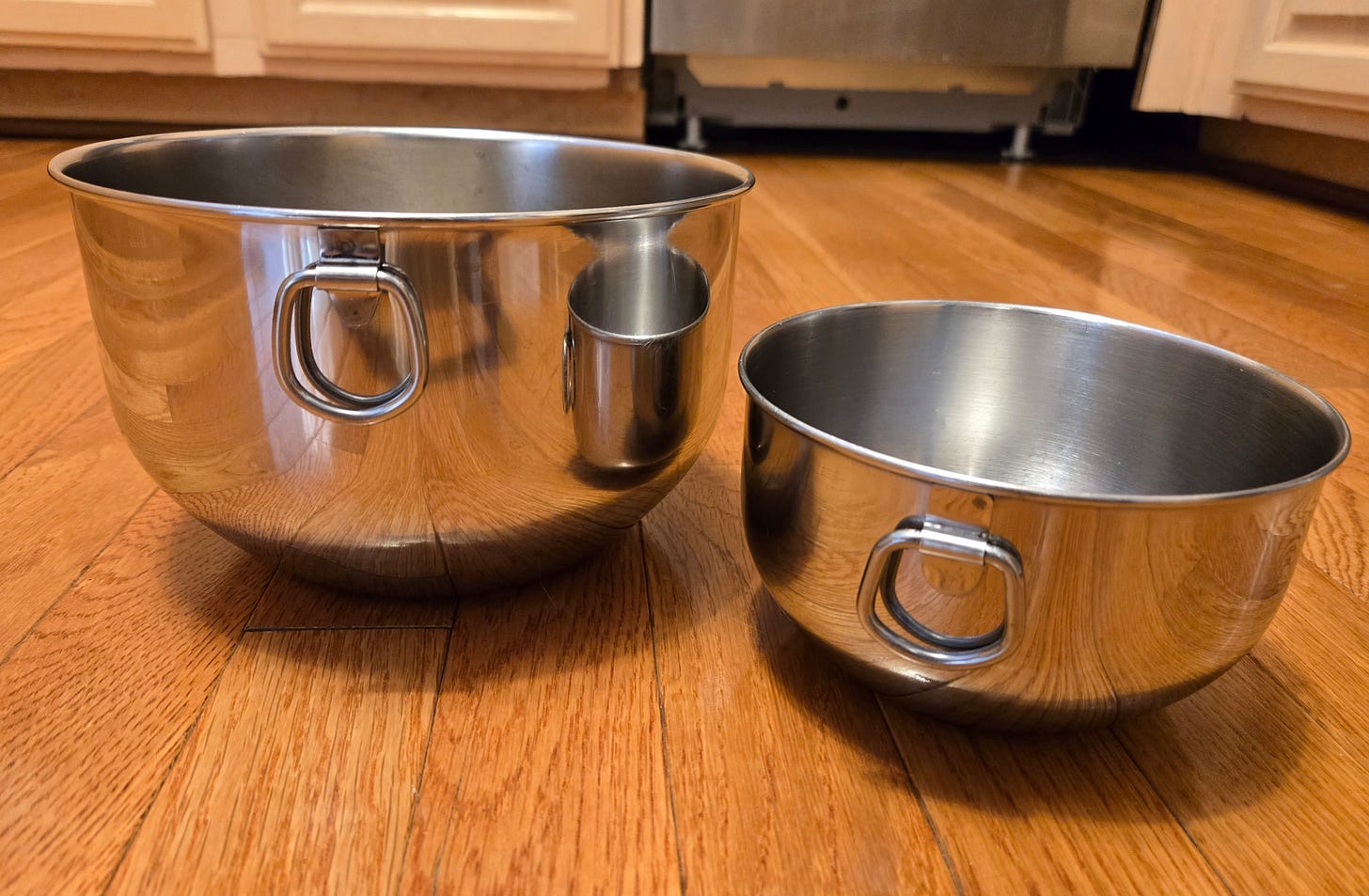 So I’m previewing one that I’m working on here. About these guys, differently sized “thumb ring” Farberware stainless steel mixing bowls: