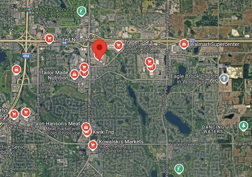 Almost no one in Woodbury east and south of I94 / 494 is more than 3 miles from a store. An easy bike trip.