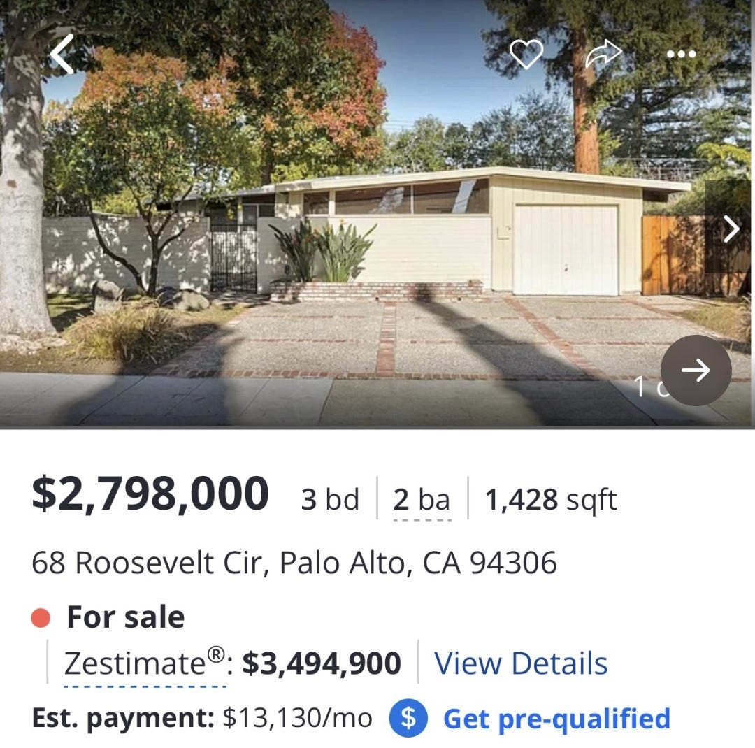 A fellow on Twitter shared this house listing from Palo Alto, California a couple of days ago, which I screencapped.