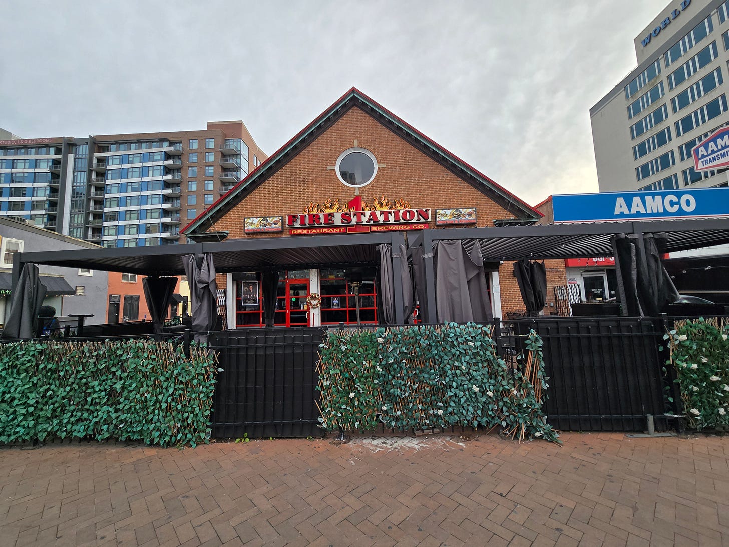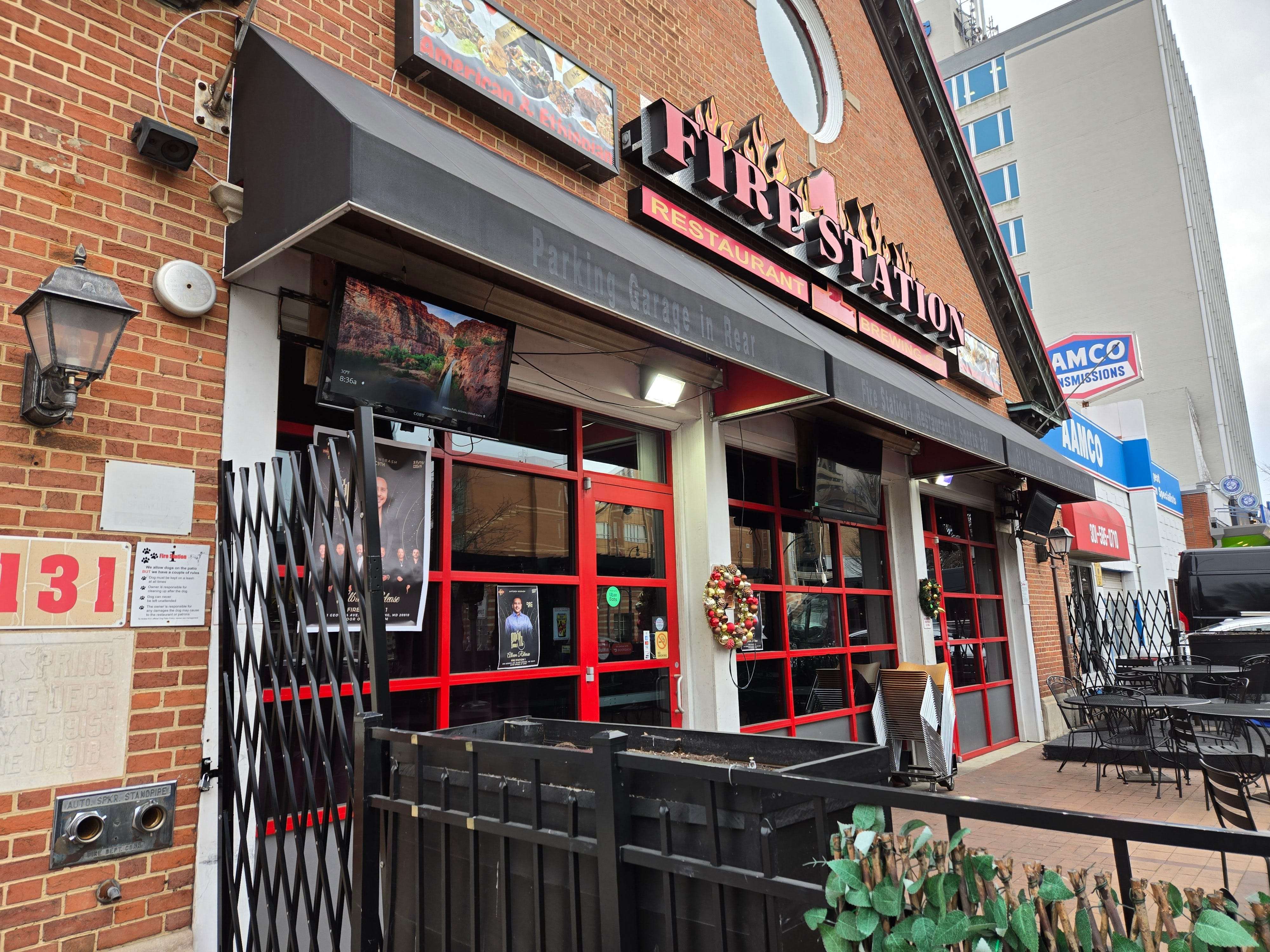 In Philly there's a similar restaurant in an old mid-block fire station that's appropriately named "Jack's Firehouse". It's in a row of adjoining commercial buildings that appear to have been built in several different eras, but still share common walls. It's also right across the street from the historic Eastern State Penitentiary, so it's a real smorgasbord of urban architecture on that block.