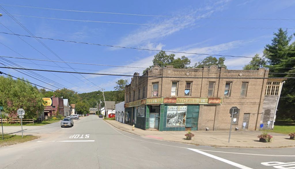 It makes me think of Parksville, New York, a slightly internet-famous old Catskills ghost town: