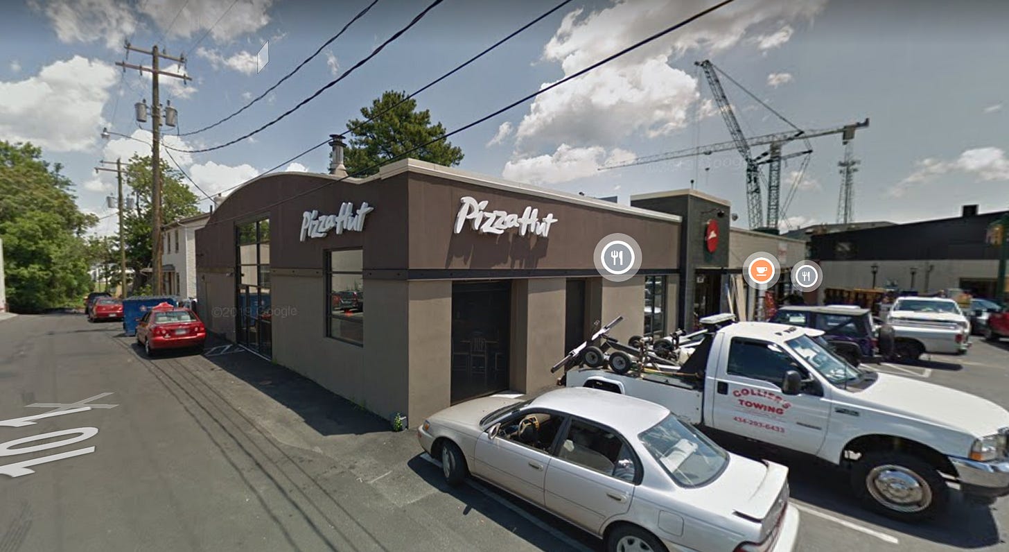 This is Google Maps’ most recent Street View imagery; in fact, the Pizza Hut is not in business any more. But this is a little odd-looking for a small strip plaza, isn’t it? What would your gu…