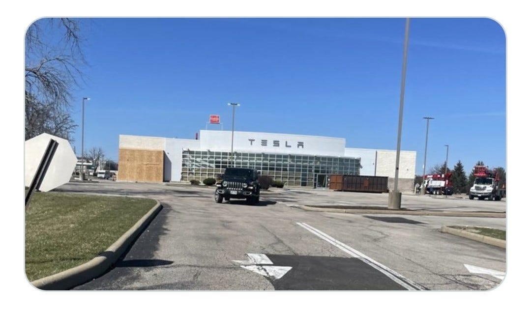 It’s a Tesla showroom—but of course it isn’t, or rather wasn’t. There’s a good chance you’ll recognize what it used to be right off the bat, but maybe not, because there were several standard model buildings for the old tenant, and this is one of the newer ones.