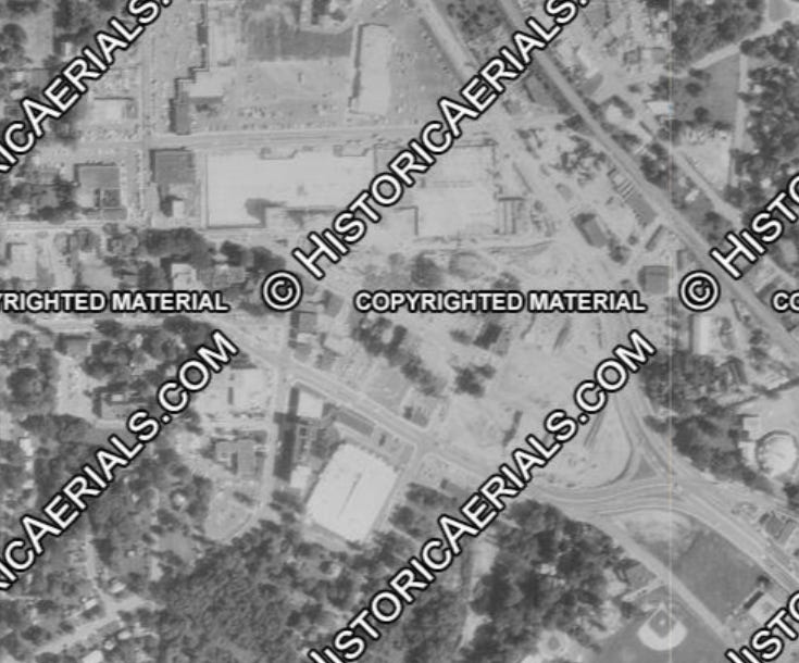 Here is that same downtown area, with the downtown basically gone, in 1970: