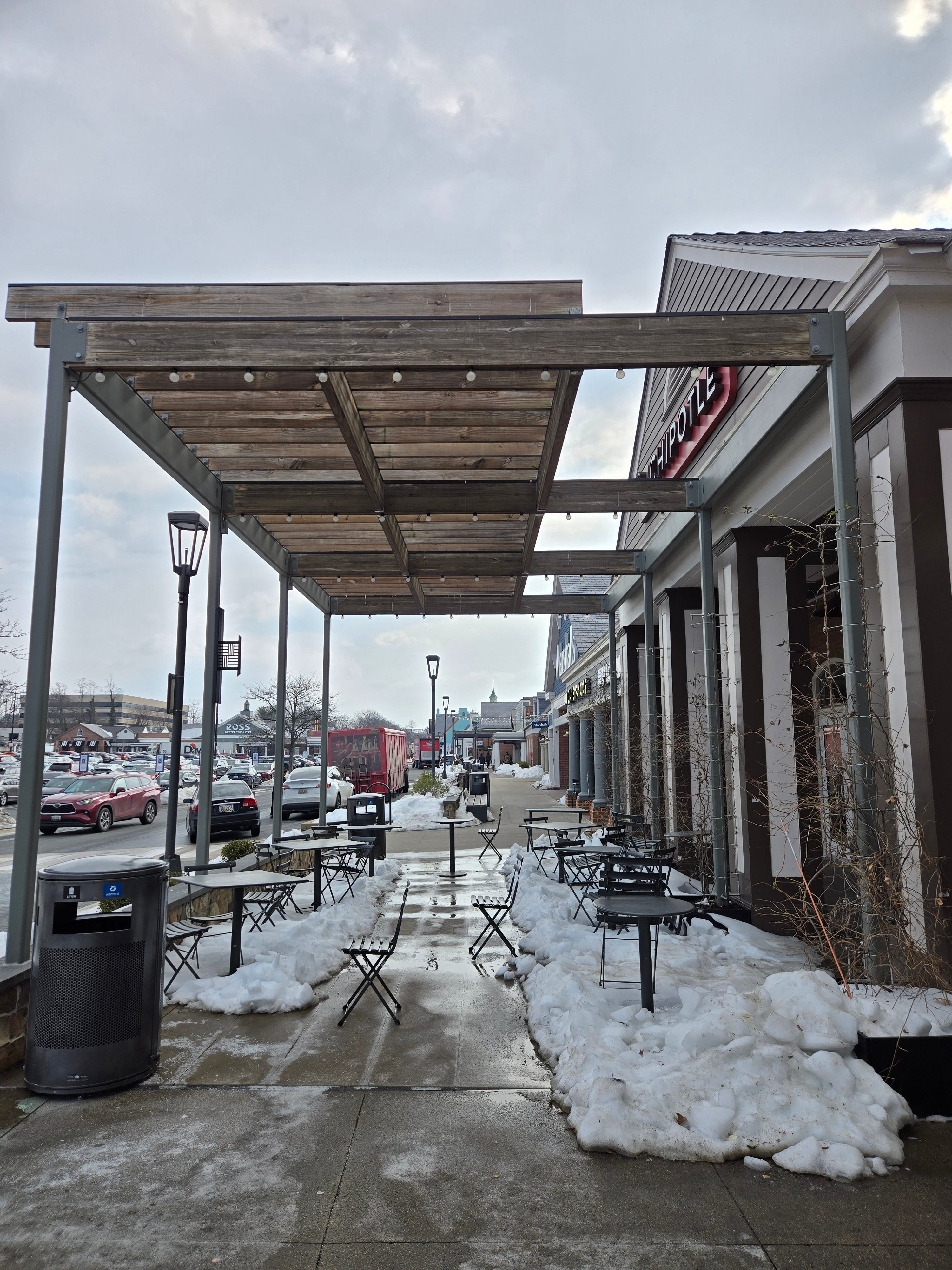 It has some little decorative features, and some outside seating for the restaurant, that makes it nicer than the average strip mall. That does little to change its function or land use, but it elevates a typically clinical and bland space and makes it a little cozier. There’s nothing wrong with that: