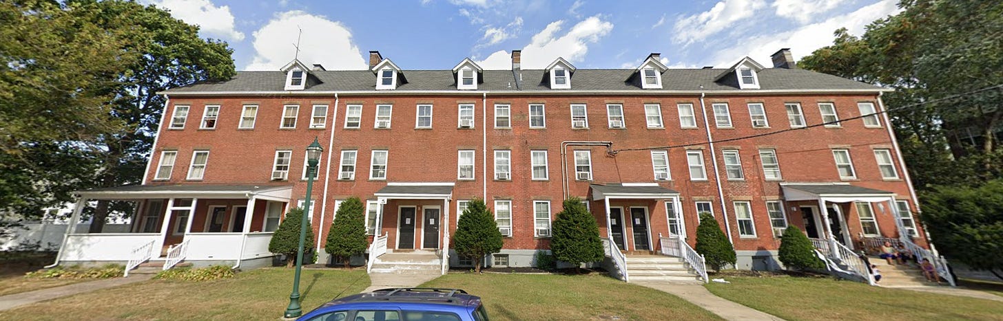 Courtesy of this Facebook post (for the idea/info—the images are from Google Maps), take a look at these rowhouses: