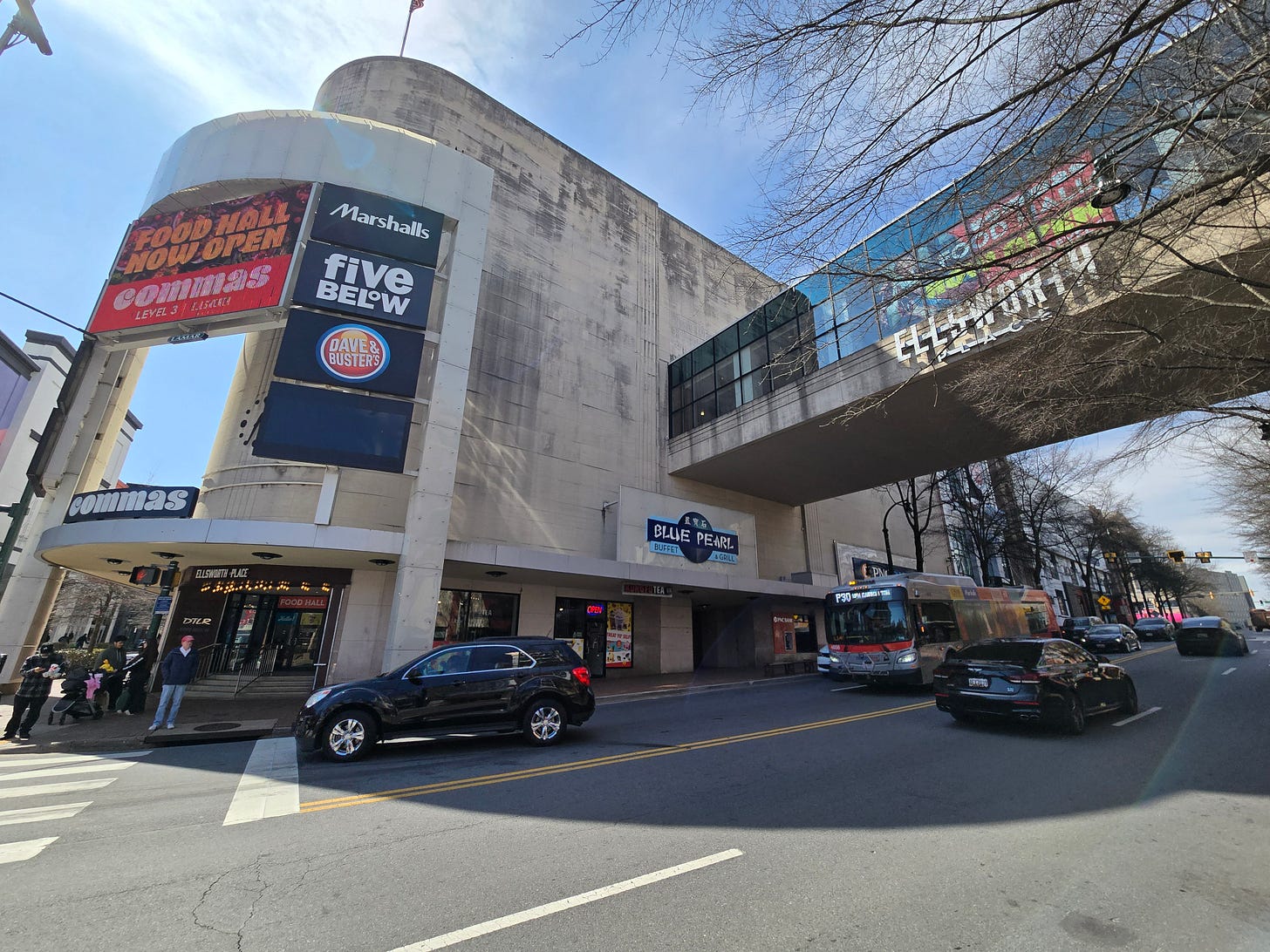While the interior has been completely reworked, the facade is almost unchanged; the asymmetrical open-grate feature on the right of the building and the old Penney’s sign remain, as do the basic window and door placements.