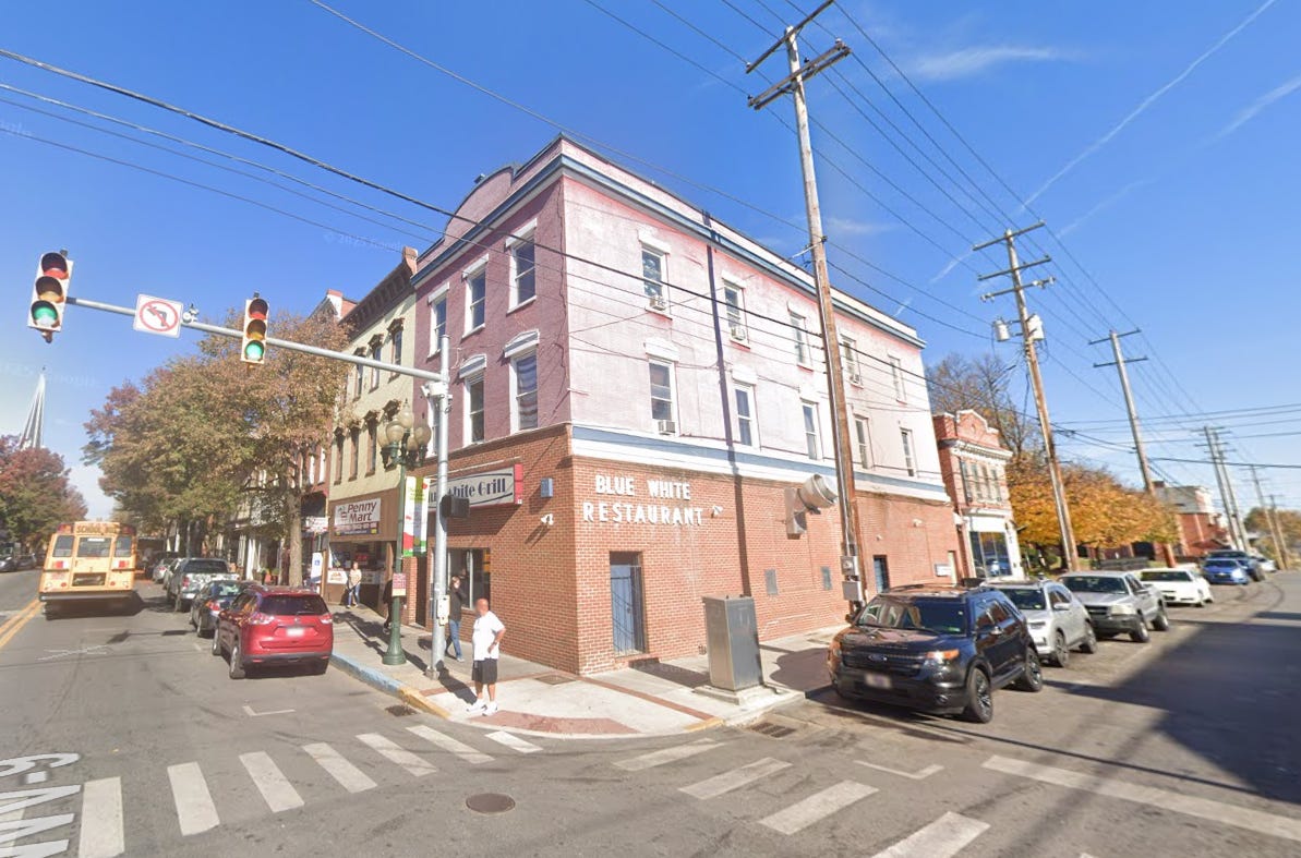 And in Martinsburg, at the address given for a Snow White Grill (Burke and Queen Street intersection), is the current Blue White Grill!