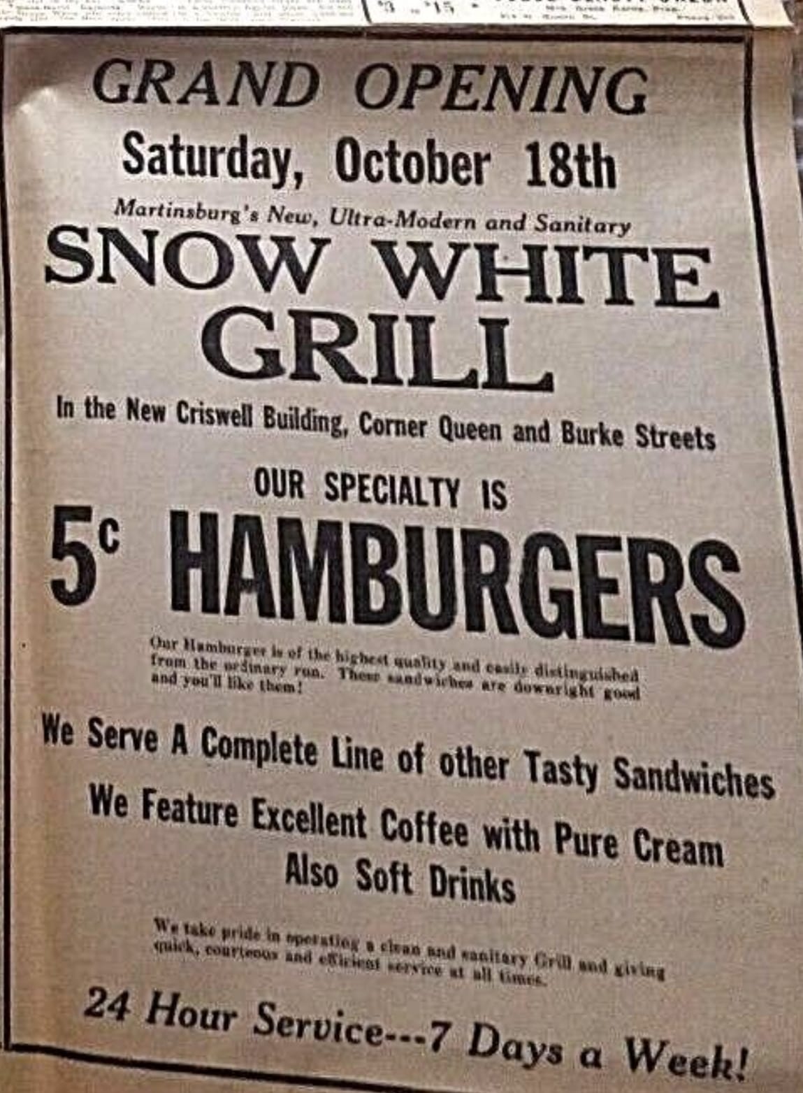 Hurst was also involved Snow White Grills opened in Hagerstown, Baltimore, Martinsburg, W.Va., and Winchester, Va.