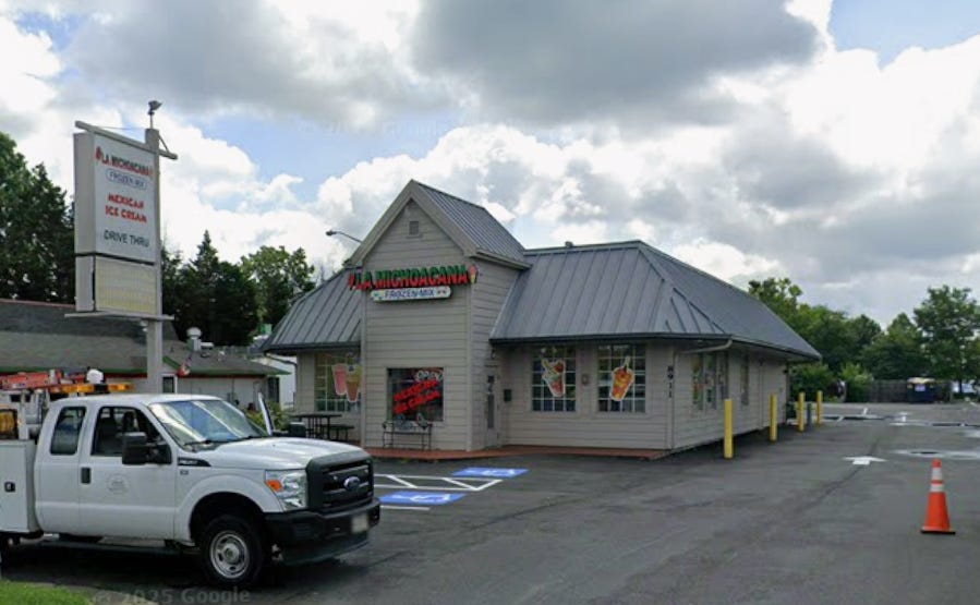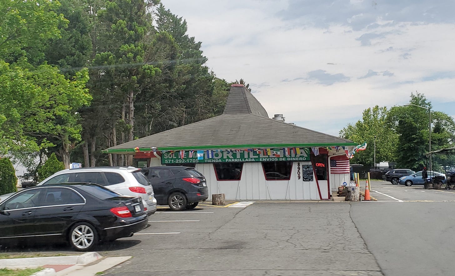 As you can guess from the businesses I pointed to, it’s a heavily Hispanic/Latino area. This full commercial strips runs partly through the city of Manassas Park, Virginia, which as of the 2020 census was about 45 percent Hispanic/Latino, and partly through the city of Manassas, about 43 percent Hispanic/Latino. There are a lot more Hispanic/Latino-owned restaurants and other businesses than the ones I mentioned. One review of another taqueria—I can’t find it again, but I wish I could—said it was just like Mexico.