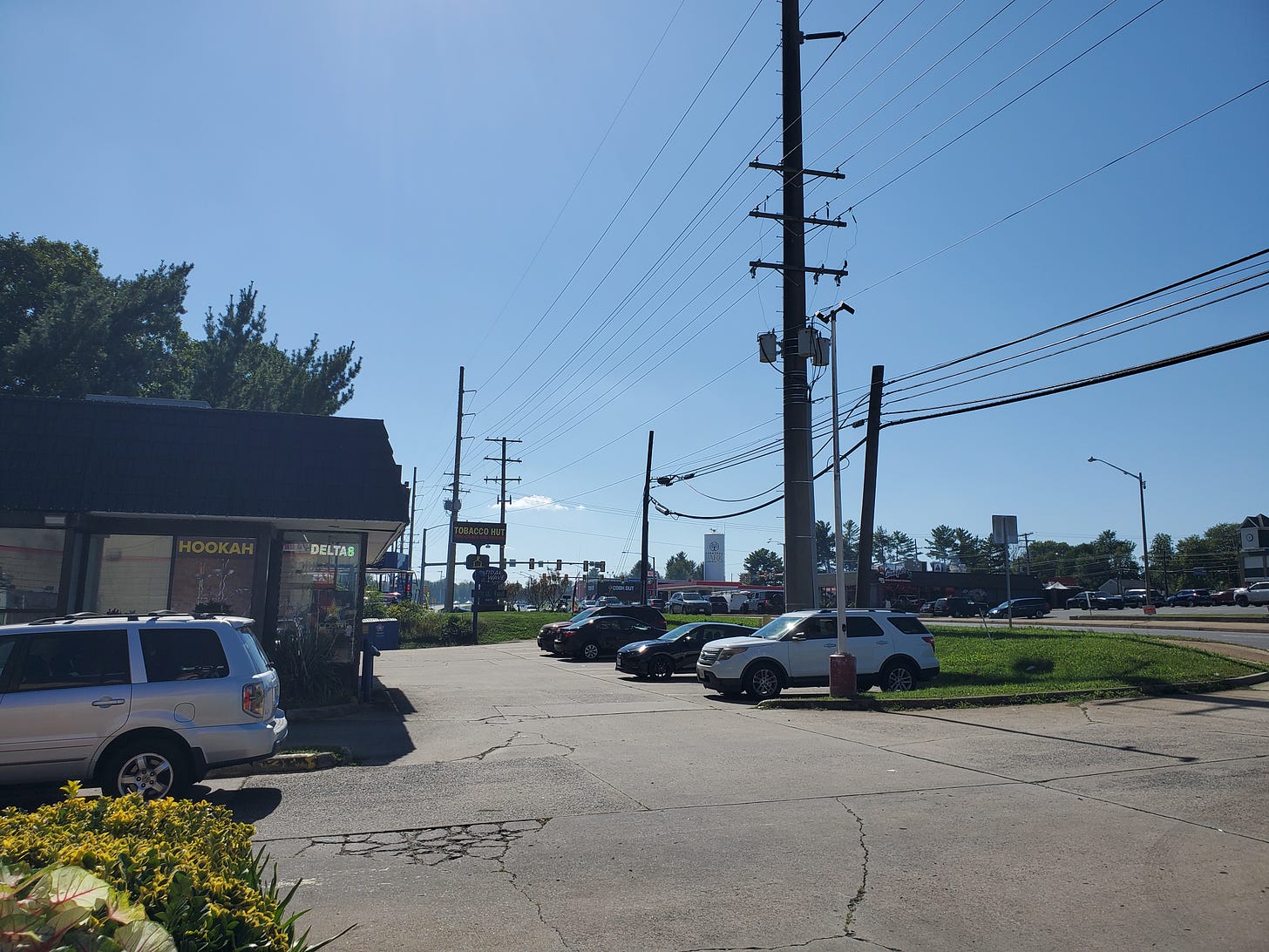 Of course this physically deteriorated, heavily car-oriented landscape is not the most functional; it’s not fun to drive, let alone walk. Every business is islanded off by roadways and driveways and parking lots, and that spreads things out. And, of course, homes are separated from the commercial area, which itself is heavily interspersed with things that aren’t exactly customer-facing, like car dealers and low-rise office buildings. In terms of the built environment or the ease of getting around, this is pretty unremarkable from an urbanist perspective. Or any perspective.