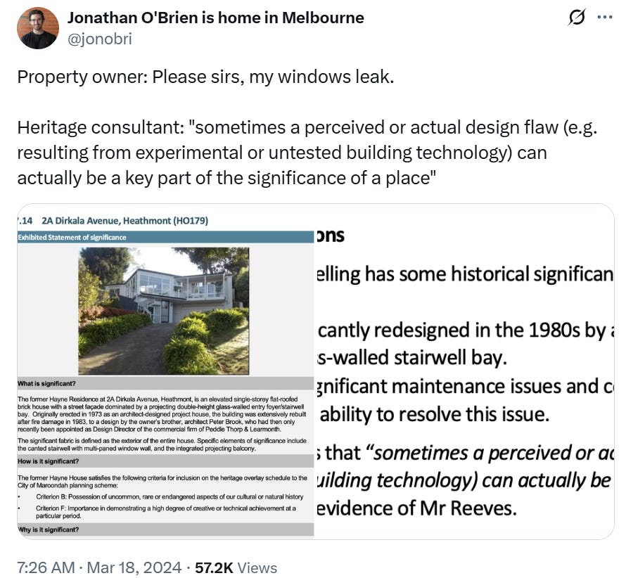 I saw this tweet a long time ago, and while it’s not from the United States, the same sort of thing goes on here with historic districts and strict rules about updates or renovations to designated buildings (think neighborhoods like Old Town Alexandria and Historic Annapolis):