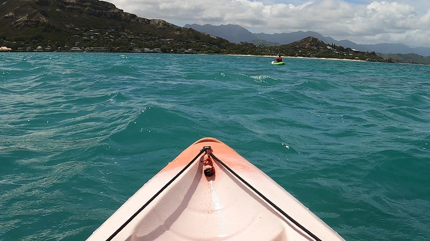 Last year, when my wife and I took a vacation in Hawaii, one of the first things we did was an ocean kayaking tour of coastal waters and small islands off the shore from Honolulu. It was a lot of fun, though fairly strenuous. And it was our first time ever using any kind of kayak.