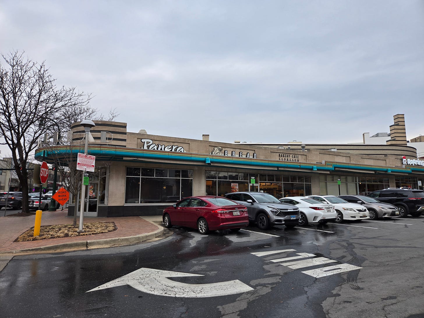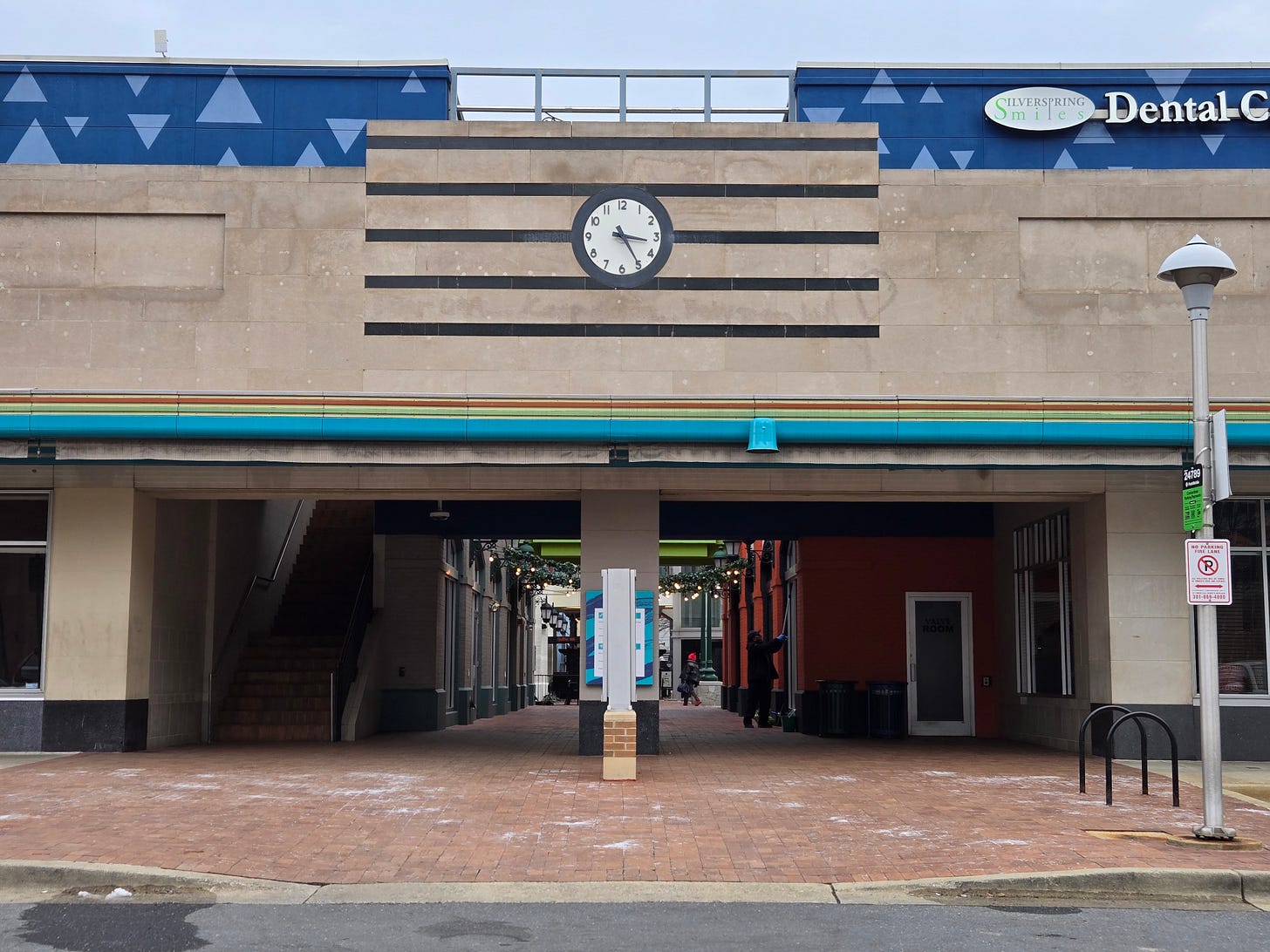 This shopping center in the middle of downtown Silver Spring, Maryland looks a bit like one of those art deco revival buildings you see sometimes being built today: