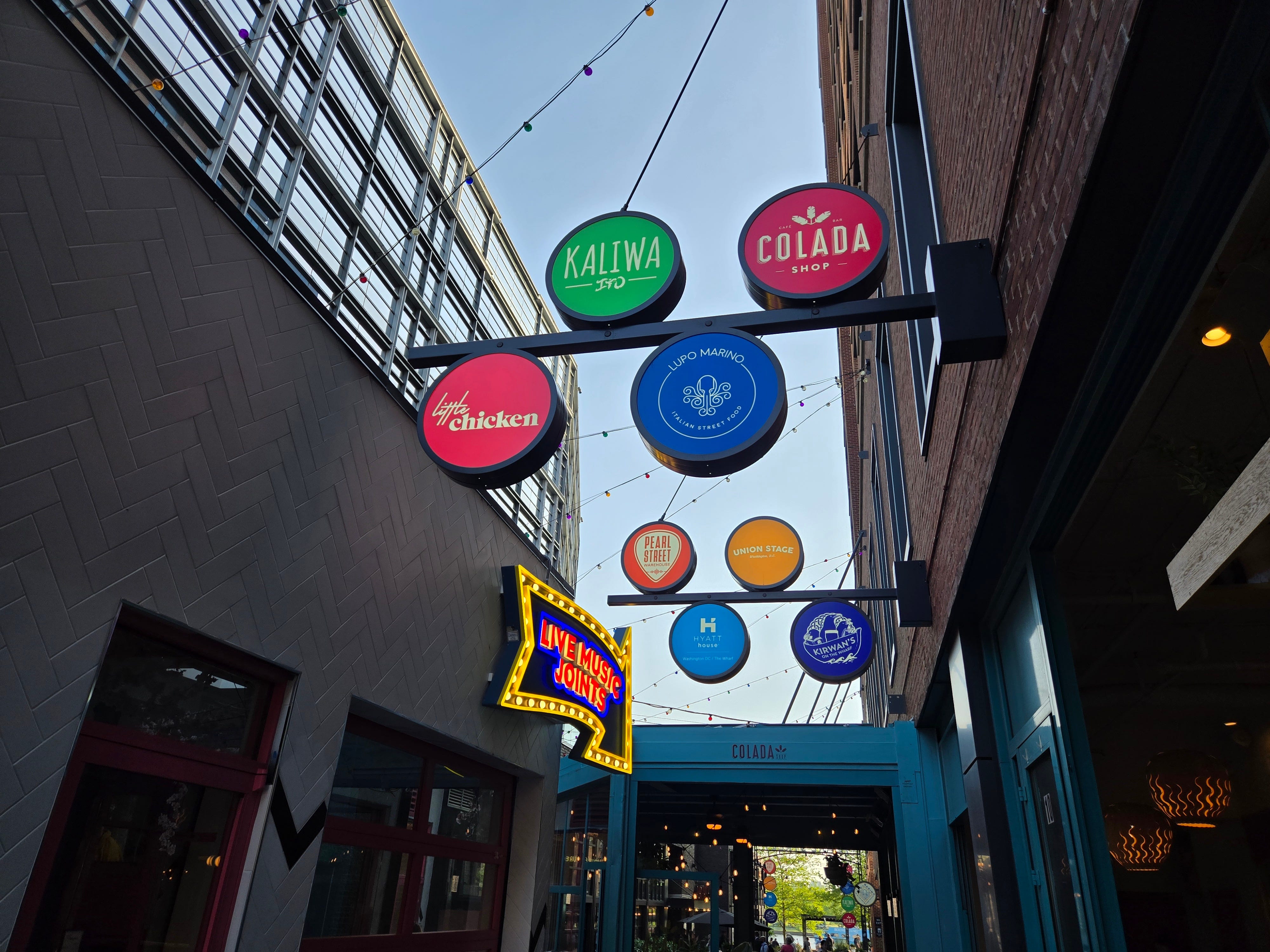 This is one of the odd things about large mixed-use developments: they copy the look, and if done well the feel, of an actual urban neighborhood. But they’re owned and/or managed by single companies. On a longer timeline, you can see how that might limit their adaptability or long-term maintenance. But maybe that doesn’t really matter. There wasn’t much here at all, and now there’s a lovely, long walk you can take along the water and a bunch of places to go. If this kind of development is ultimately theme park more than neighborhood, well, what’s wrong with a city having a theme park? And if these developments may eventually be wholesale redeveloped yet again, decades in the future, instead of slowly evolving lot by lot? In the long run, how different is it, really?