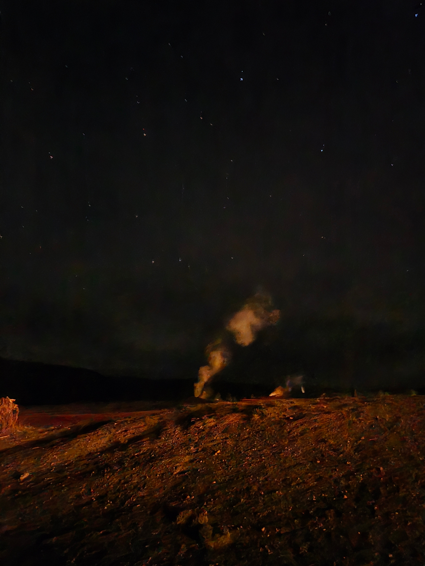 Here’s Old Faithful, a few minutes before erupting, under the stars. I see why they made this a national park.
